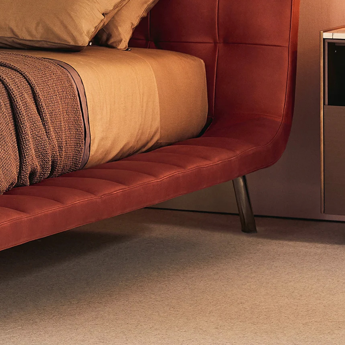 A wide angle photo of a Poliform sofa